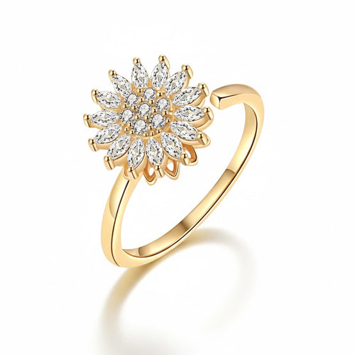 Anel Anti Ansiedade Praeado Girassol Dourado